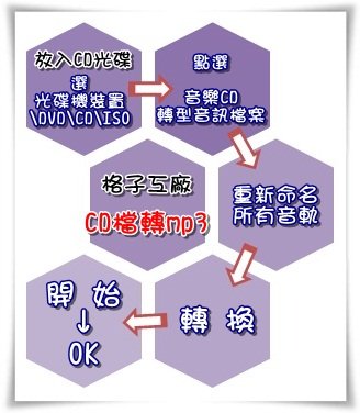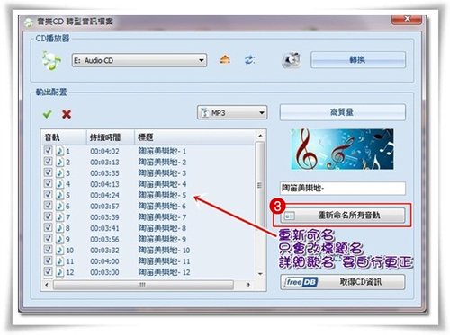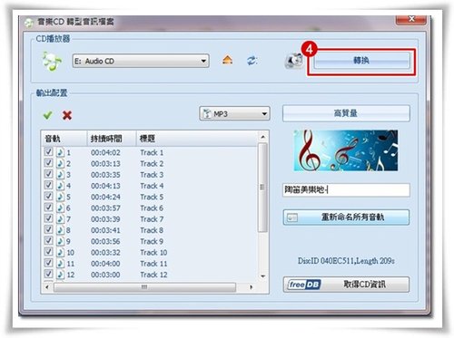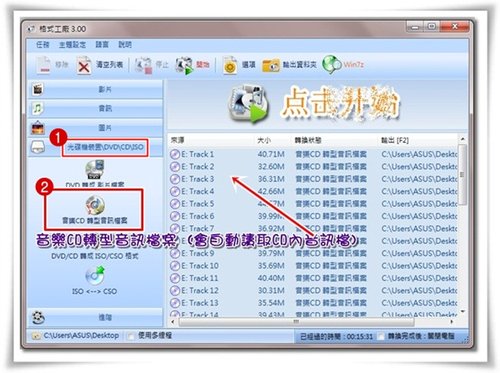 2.→音樂CD轉型音訊檔案 (會自動讀取CD內音訊檔)