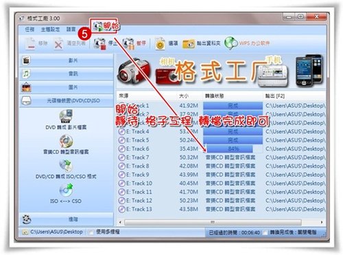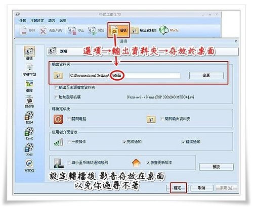 記得事先設定轉檔後影音存放在桌面 以免你遍尋不著